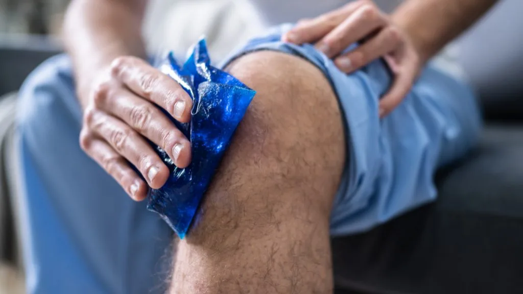 Apply a cold pack, bag of frozen vegetables, or ice wrapped in a thin towel to the injured area for 20 minutes at a time. Repeat every two to three hours during the first 48 hours. Cold therapy constricts blood vessels, which reduces swelling and numbs the area to provide pain relief. Never apply ice directly to bare skin, as this can cause frostbite — always use a barrier layer between the ice and the skin.